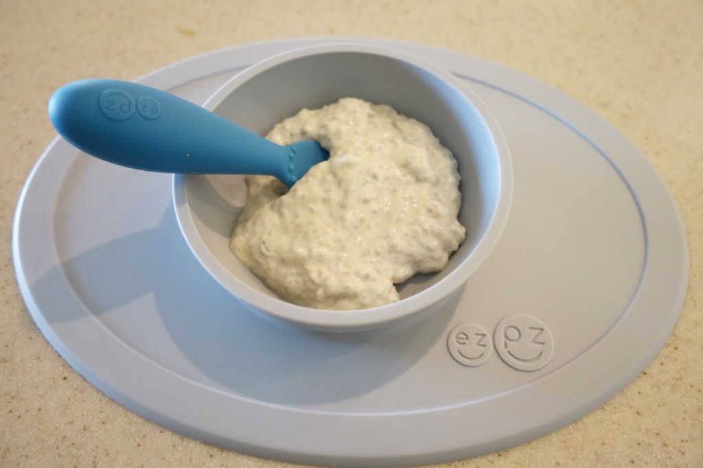 I mixed everything in a glass container (except for the pear purée), left it overnight in the fridge, and then added the pear purée right before serving. This make enough for about 4 servings for a baby or 2 toddler servings.