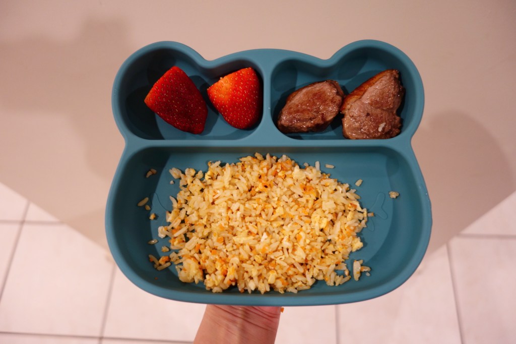 As you will notice we have a new plate! Jackson has been successfully pulling his bamboo plates off the tray so I invested in a new plate from We Might Be Tiny. I also purchased the lid for when we eat out and also one of their placemats (absolutely love this!).