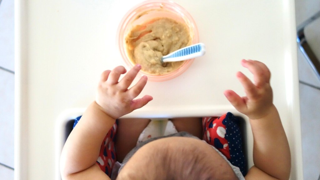 His first taste was puréed steamed chicken, and although that doesn’t sound appealing at all, it actually tasted pretty good. Since then I have given him shredded chicken and chicken drumsticks, as well as chicken purée and vegetable combinations.
